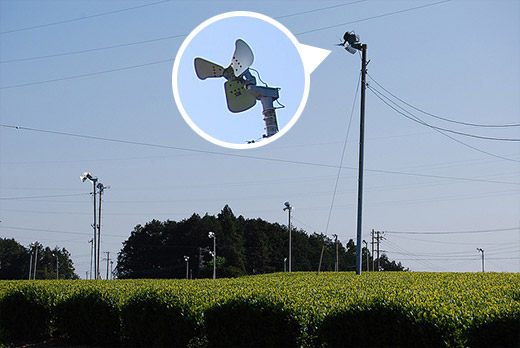 茶畑でよく見かける扇風機。これは防霜(ぼうそう)ファンと言います