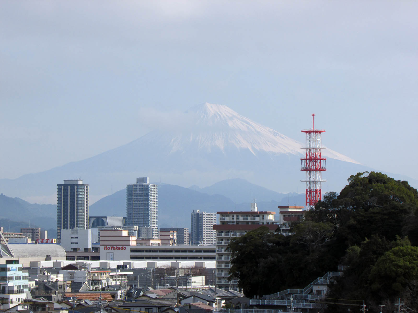昨晩の雨もあがって、富士山がきれいに見えています。花粉が舞っているため、富士山が見えにくい時期に、こんなにくっきり見えることは珍しいですね。
