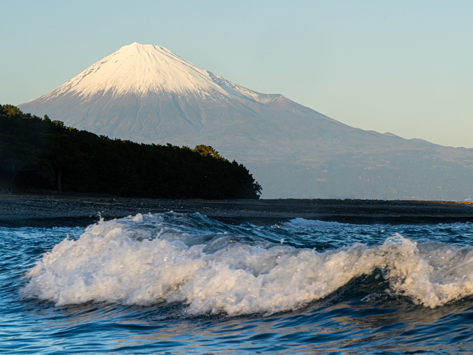 あけましておめでとうございます。本年もスタッフ一同邁進してまいりますので、ご支援ご協力のほどよろしくお願いいたします。新年一発目の今日の富士山は、三保真﨑海岸より撮影しました。